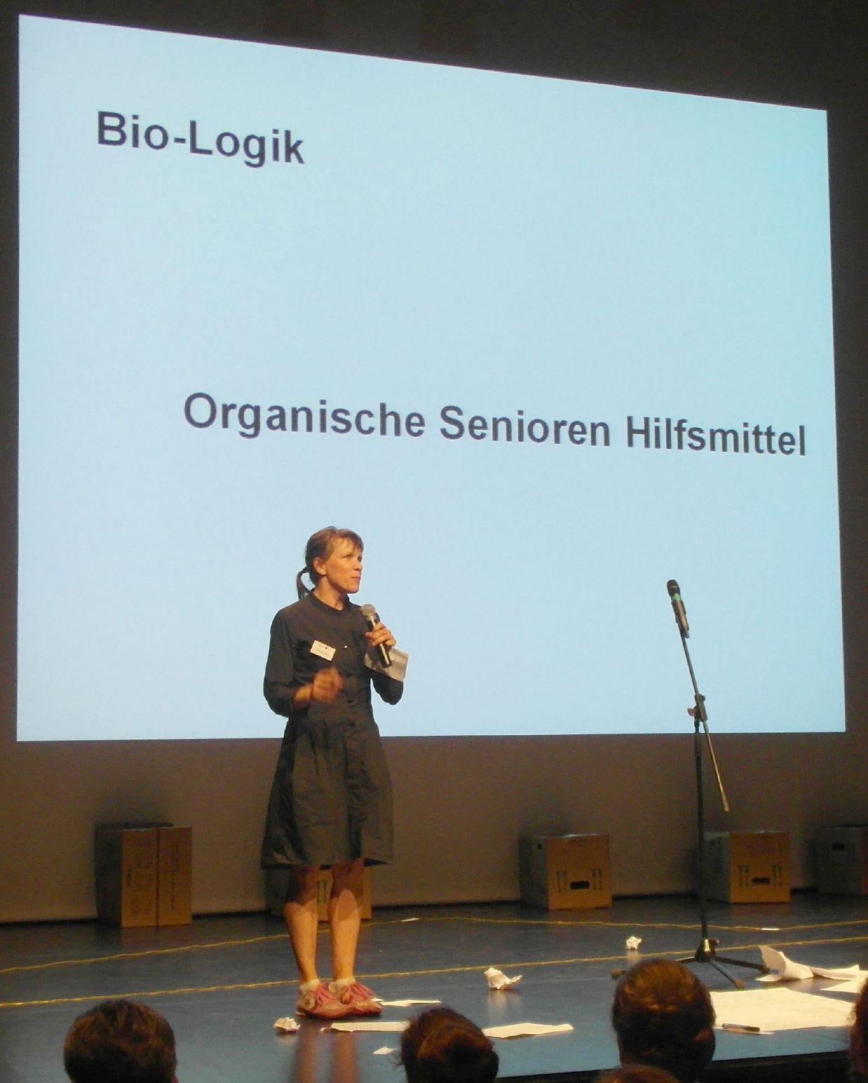 Bildunterschrift: Dr. Rionach Ni Neill bei ihrer Präsentation von getanzter Bio-Logik - so genannten organische Senioren-Hilfsmitteln